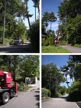 敷地外へ傾斜して伸びたカラマツを伐採いたしました。