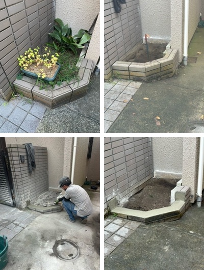 タイルの花壇を一部壊して、高さを下げました。